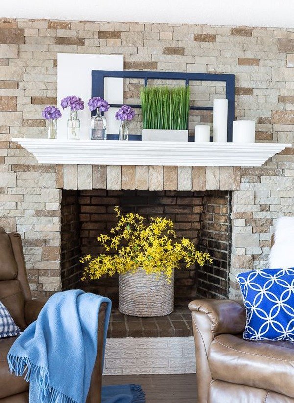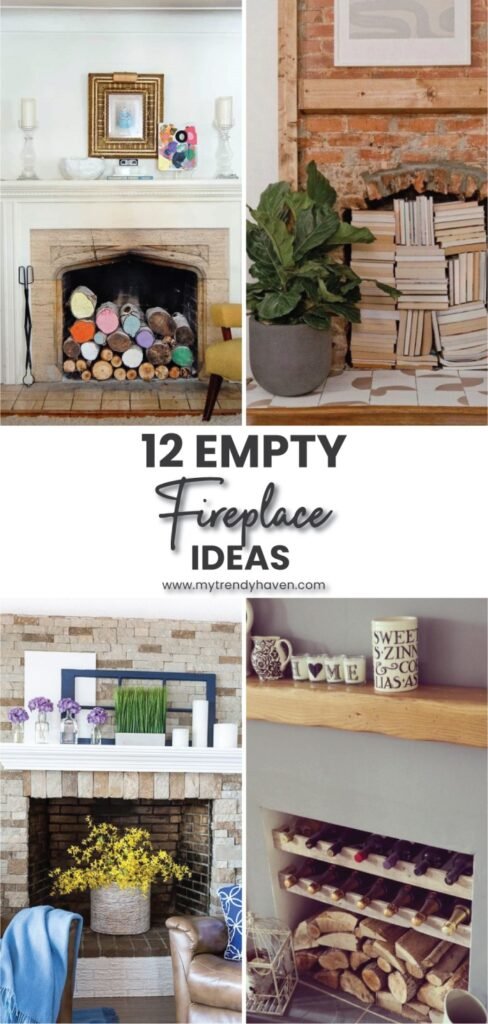 Style your empty fireplace with decorative pieces like vases, sculptures, or seasonal accents. This transforms the space into a curated display that adds character and charm to the room.