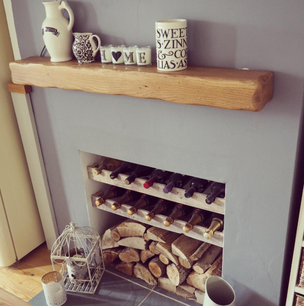 Repurpose your unused fireplace by adding a wine rack. Store bottles neatly, create a stylish focal point, and add character to your living space with this clever storage idea.