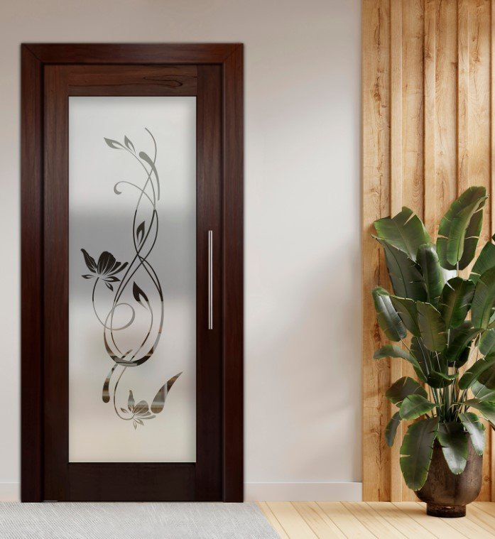 Vertical glass strips make the door seem taller. Horizontal panels add width and openness. Frosted or patterned glass helps maintain privacy.