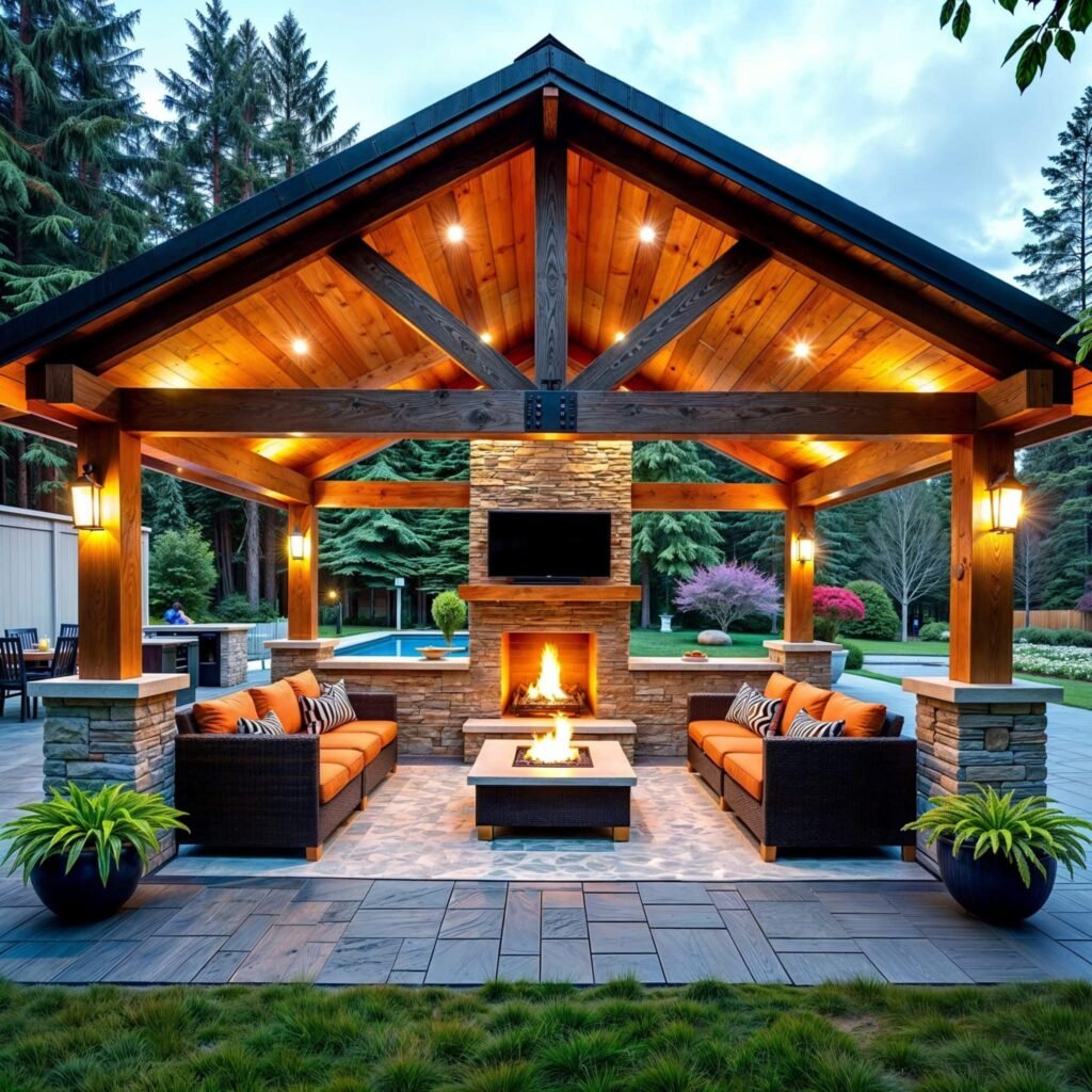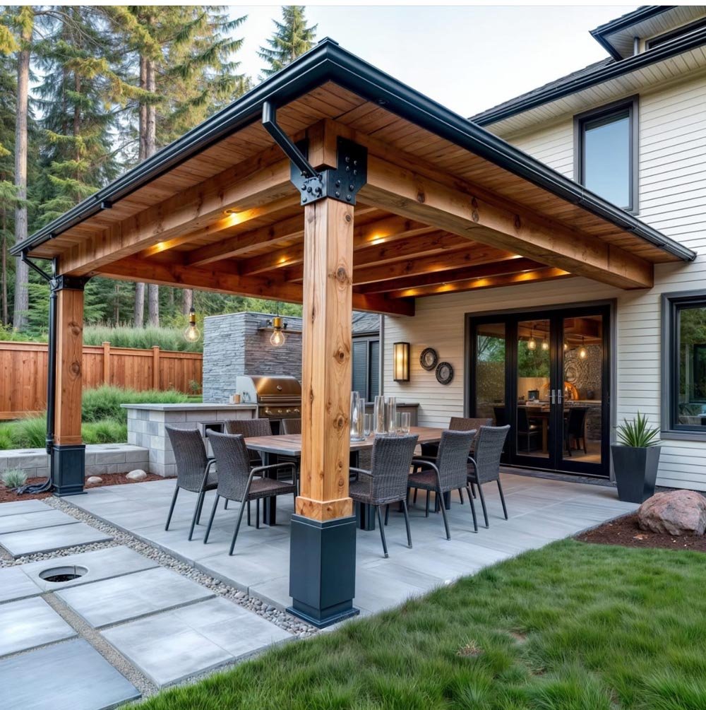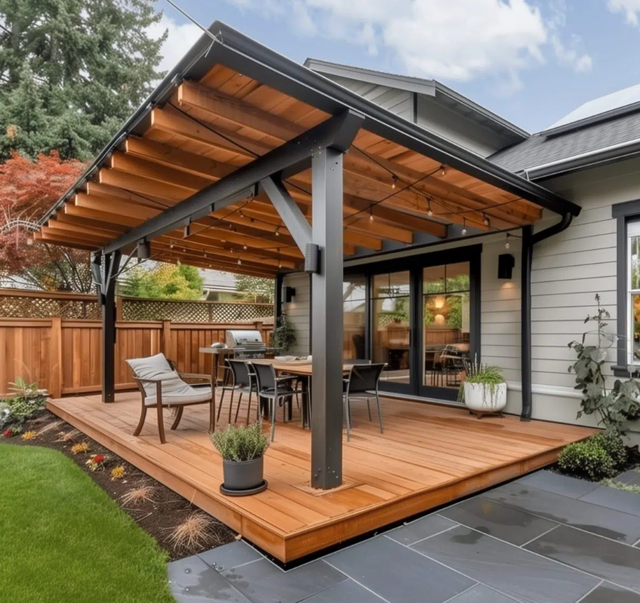 Do you prefer a traditional pitched roof that mirrors your home’s architecture? Or are you leaning toward something bold, like a flat design or angular structure, that makes your outdoor space stand apart?