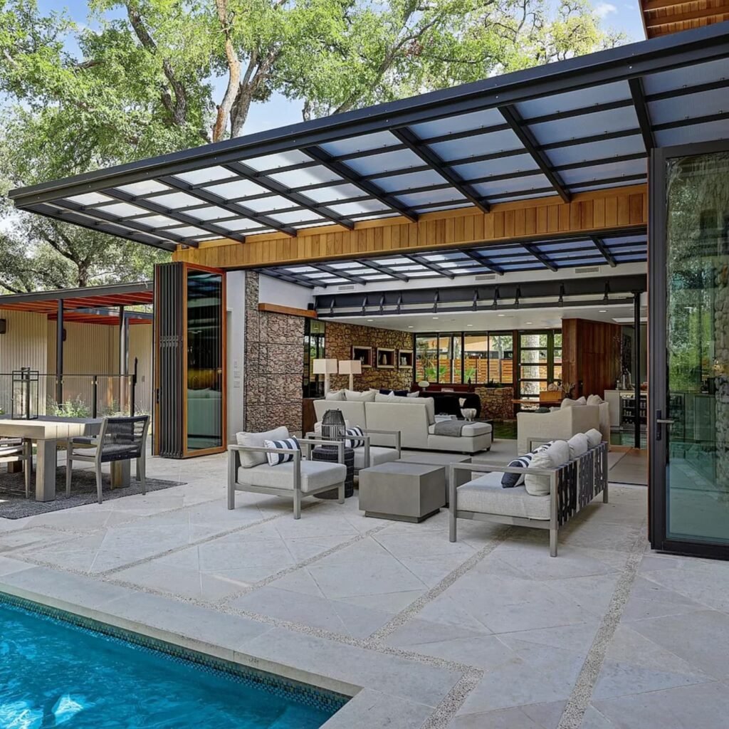 On the flip side, you may prefer your patio to feel like its own outdoor room—separate yet still tied to the house. Contrasting textures, fresh materials, or bold features can achieve this balance. Think of it as giving the patio its own character: slightly independent, yet still part of the family circle. Save the connection style that feels right for you as inspiration for your year-round retreat.