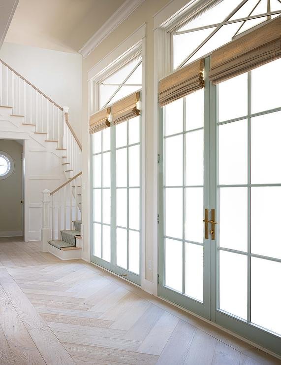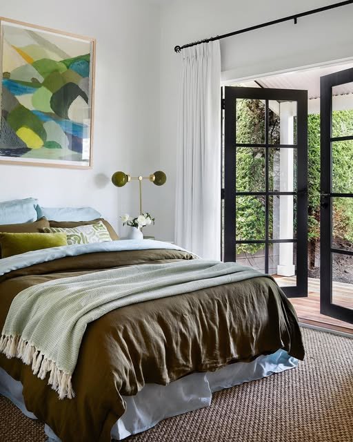 Introduce gentle pops of color to your French doors with soft pastels, muted blues, or earthy tones. These subtle shades uplift your space, add personality, and maintain a light, inviting feel.