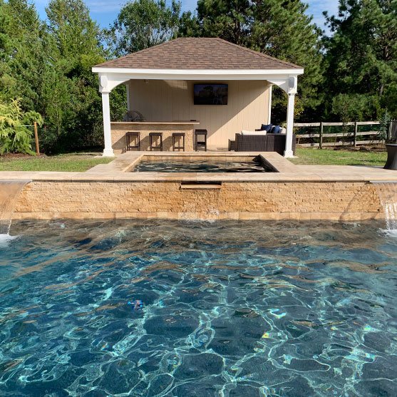 A bar and grill cabana adds fun and convenience to poolside living. Imagine swimming, then walking a few steps to grab a fresh drink or enjoy hot grilled food. This setup is perfect for families that enjoy entertaining guests.