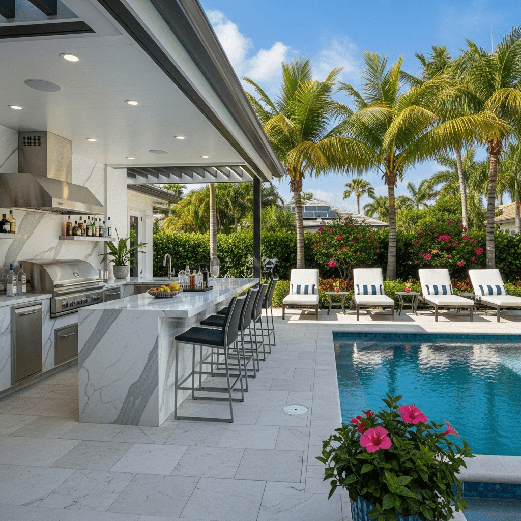 A pool and kitchen combo brings people together sunny afternoons, smoky grills, laughter by the water. That’s the magic of outdoor living done right.