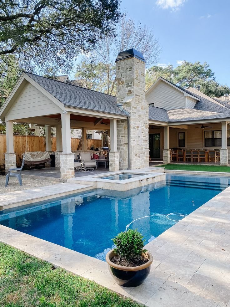 A pool and an outdoor kitchen can turn any backyard into a private escape. From cozy fire-lit spaces to modern designs, there are endless ideas to make your outdoor area special.