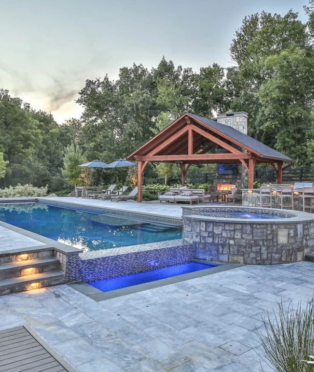 The mix of a pool and kitchen offers comfort, fun, and style in one space. It lets you cook, eat, and relax without going inside. Guests can enjoy swimming while food is being prepared nearby.