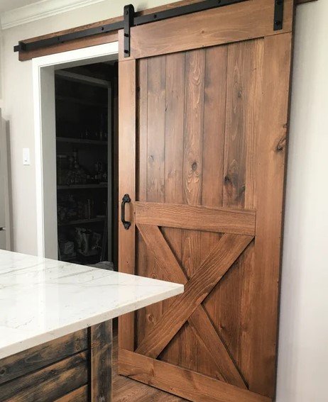 Rustic barn doors remind many people of traditional farmhouses. Thick wooden planks, visible knots, and a rough finish make them feel authentic. The door often uses reclaimed wood, which carries marks of history. Each scratch, dent, or natural crack tells a story.