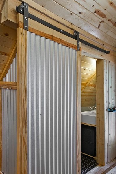 A colorful barn door changes the mood of the room instantly. Deep blue, emerald green, or even mustard yellow can bring life to plain walls.