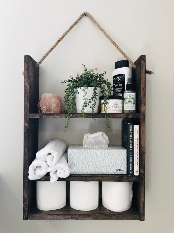 Rope shelves combine function and style with a nautical twist. Wooden planks hang from thick ropes attached to the wall or ceiling.