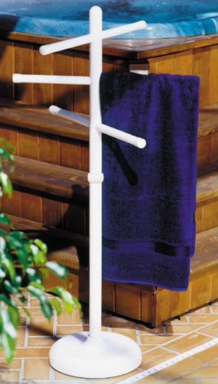 Each branch holds one or two towels, allowing them to dry evenly. The stand fits perfectly beside a pool, hot tub, or outdoor shower.