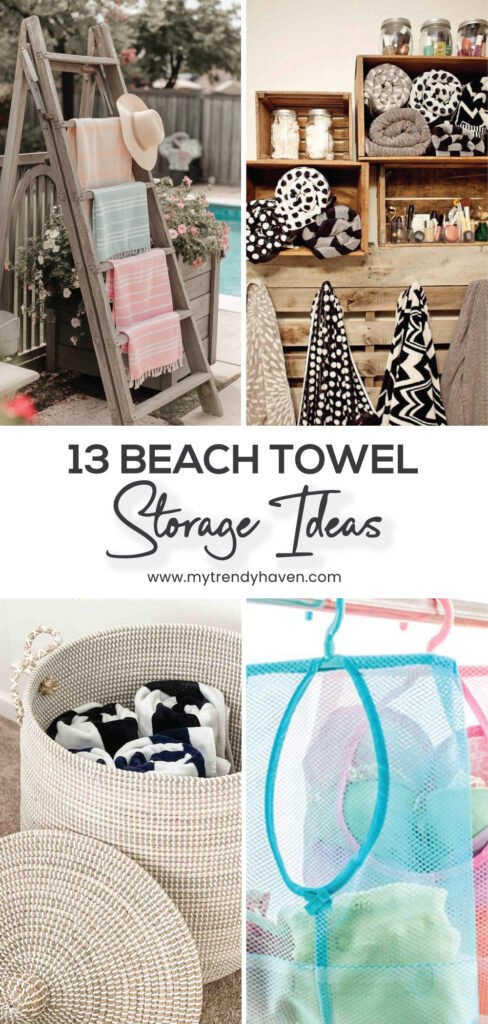 Below are 13 creative and practical beach towel storage ideas that keep everything tidy, dry, and ready for your next beach day.