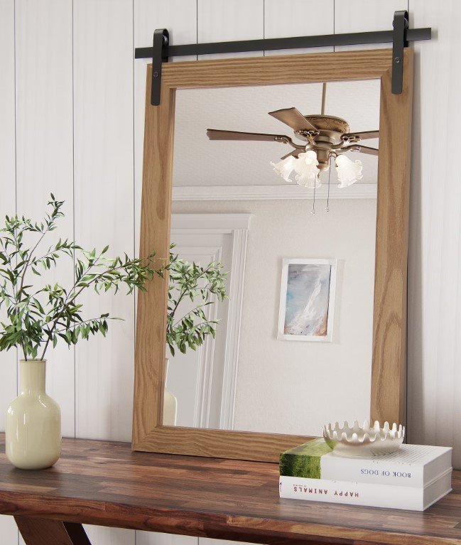 Mirrors brighten up a room while making it feel larger. Farmhouse-style mirrors often come with wooden or iron frames. Distressed finishes give them vintage charm.