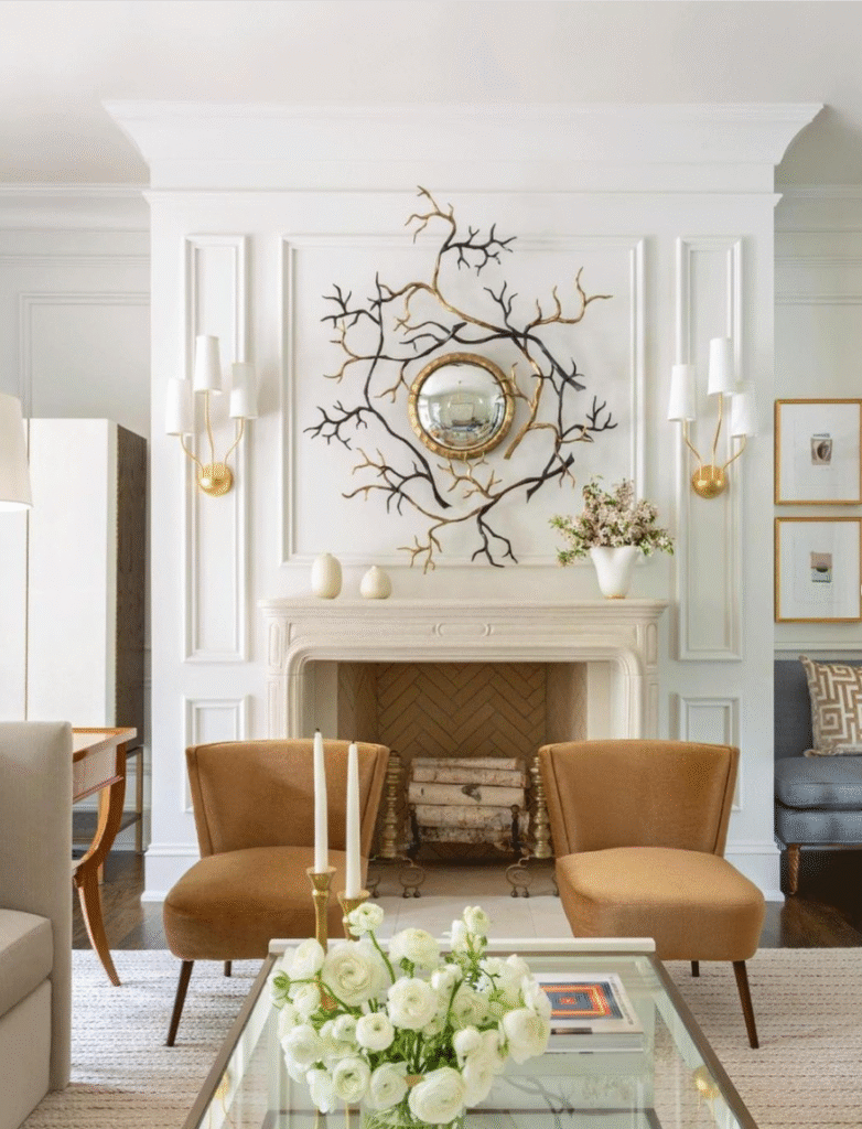 06. Stylish Gold Sconces on Fireplace