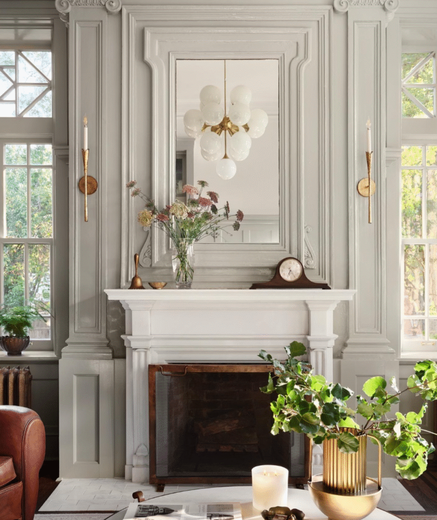 10. Gold Frames & Sconces Fireplace Style