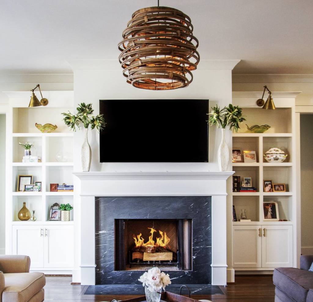 02. Stylish Black Sconces by Fireplace Built-Ins