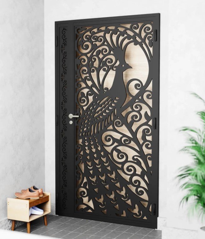 Laser-cut metal doors look stunning. They combine precision design with durability. The metal sheet can be cut into detailed shapes abstract, geometric, or nature-inspired patterns.