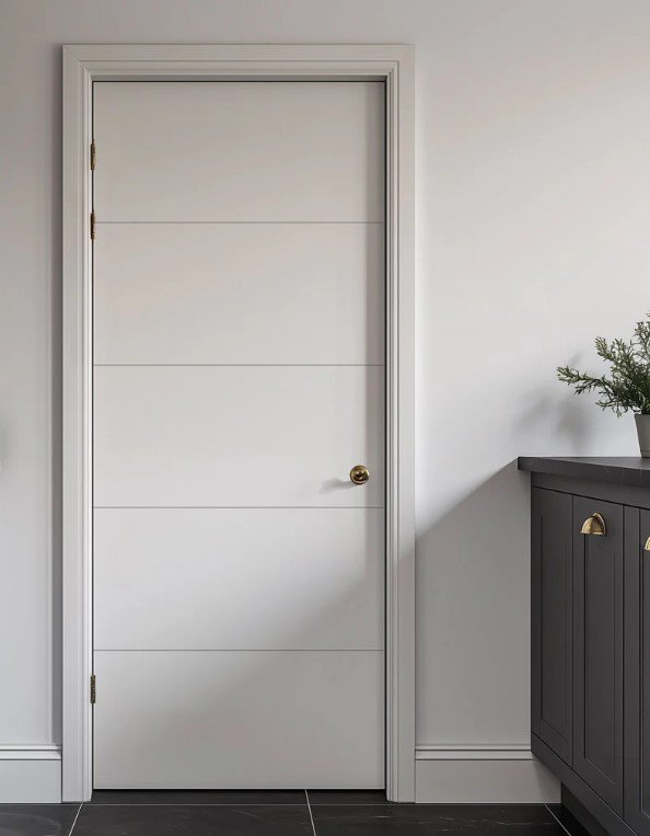 Texture makes simplicity interesting. Solid core doors with fine horizontal grooves create a modern rhythm that feels calm and elegant. The lines add subtle detail without decoration.