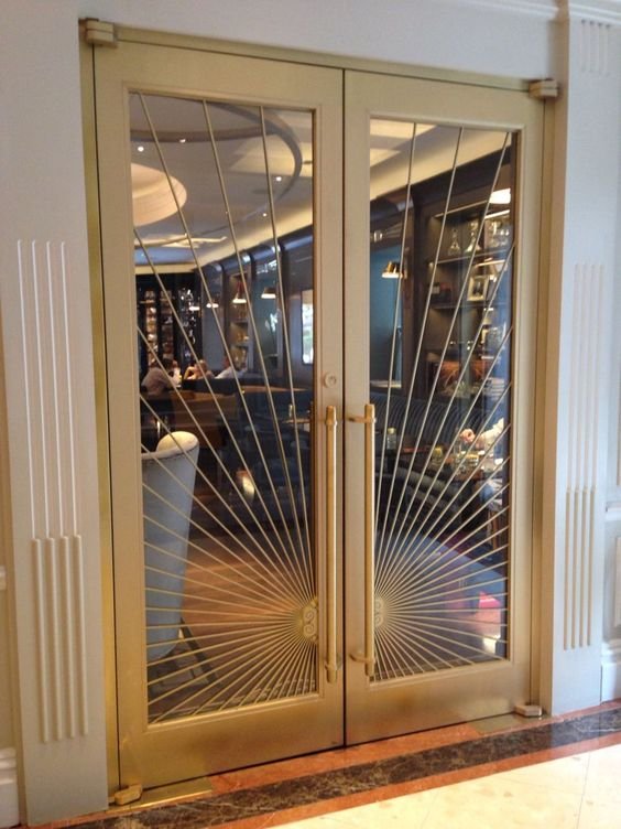 Modern double doors use clean shapes often large glass panels with thin frames or solid wood pieces with minimal decoration. They allow natural light and improve air circulation.