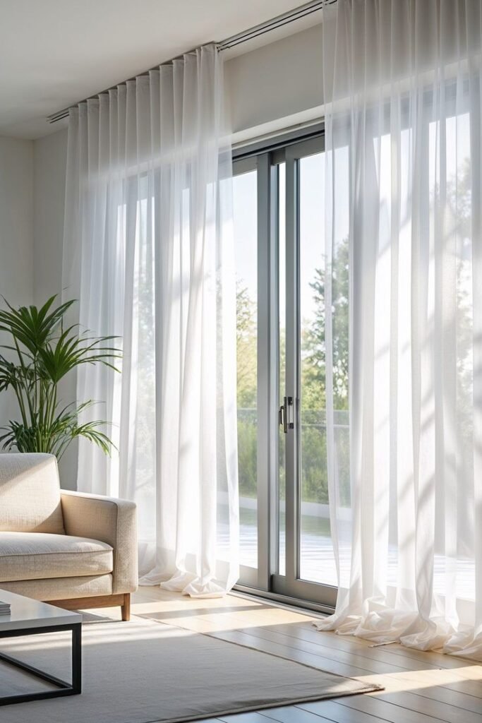 Sheer panels are a classic choice that let sunlight filter through while still giving a layer of privacy. Their lightweight fabric softens the room’s atmosphere, making them a favorite for open and relaxed interiors.