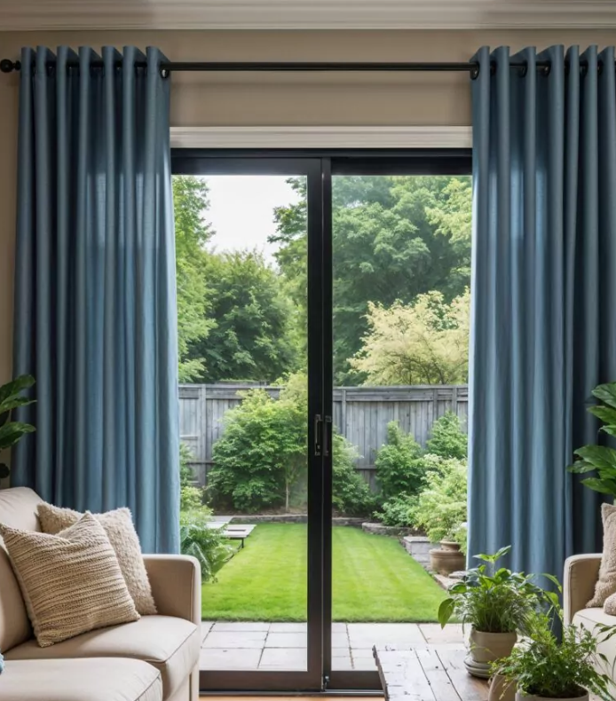 Layering curtains is an easy way to add flexibility and style to sliding glass doors. Pairing sheer panels with blackout drapes or blinds lets you enjoy both natural light and full privacy whenever you need it.