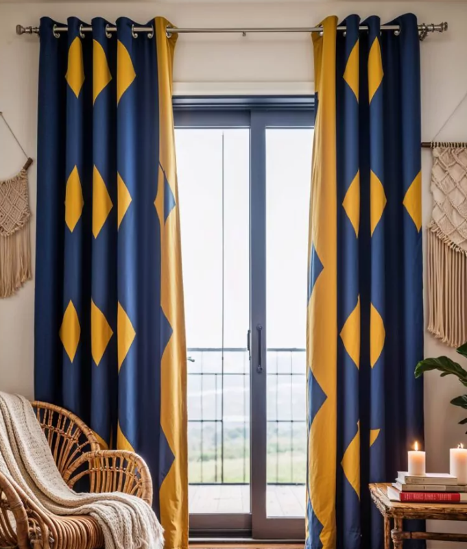 Patterned curtains are an expressive choice for sliding glass doors, turning them into a striking design feature. Whether floral, geometric, or abstract, bold prints can instantly energize a room and bring character to your décor.