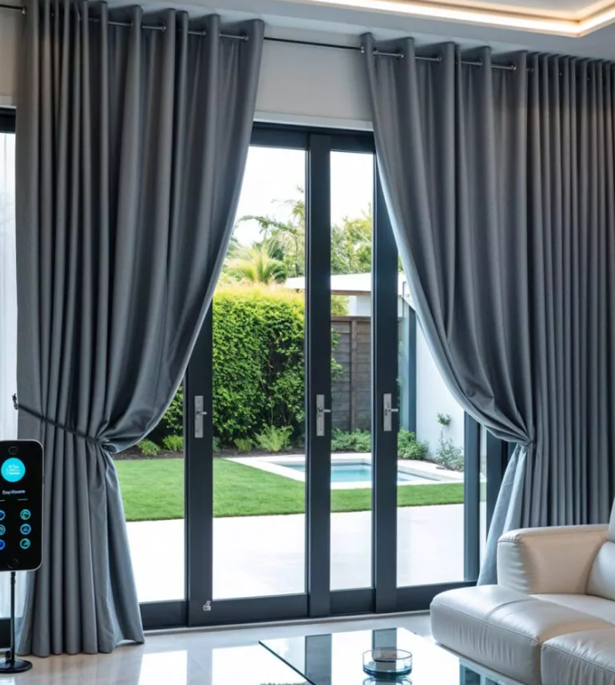 Motorized curtains bring modern ease to your sliding glass doors, offering control at the touch of a button, with voice commands, or through an app. They’re especially practical for large or hard-to-reach doors, blending style with smart technology.