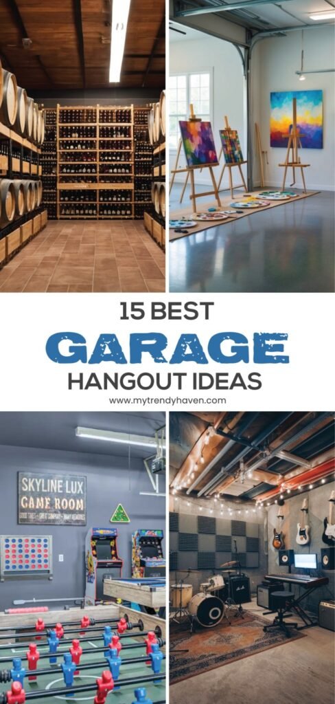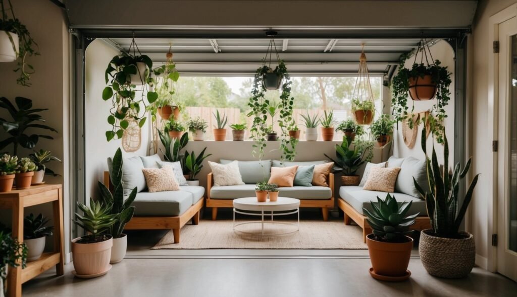 Complete the look with throw pillows, blankets, and repurposed tables for snacks and drinks. Add plants, shelves, and warm lighting to create an inviting vibe. With a few personal touches, your garage becomes a relaxed and welcoming retreat.