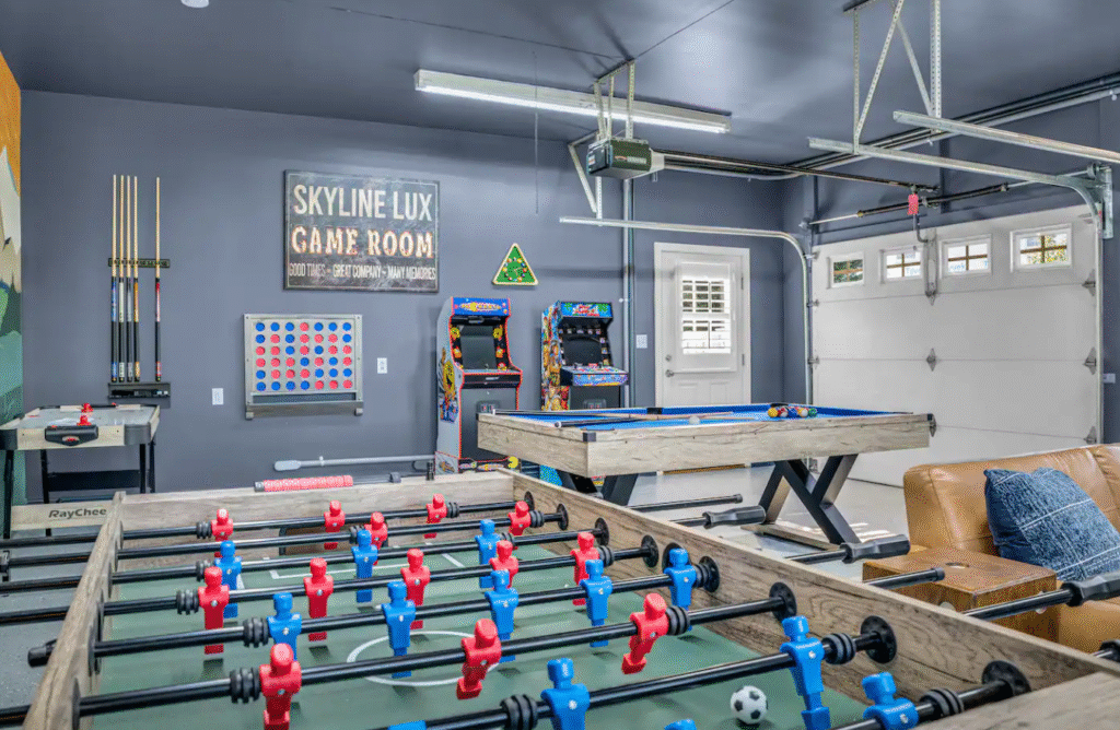 Turning part of your garage into a game room is a great way to add fun and function to your home. Pool tables, dart boards, or even a retro arcade setup can instantly bring energy into the space. Add a big-screen TV for sports nights or console gaming, and you’ll have a spot everyone wants to hang out in.