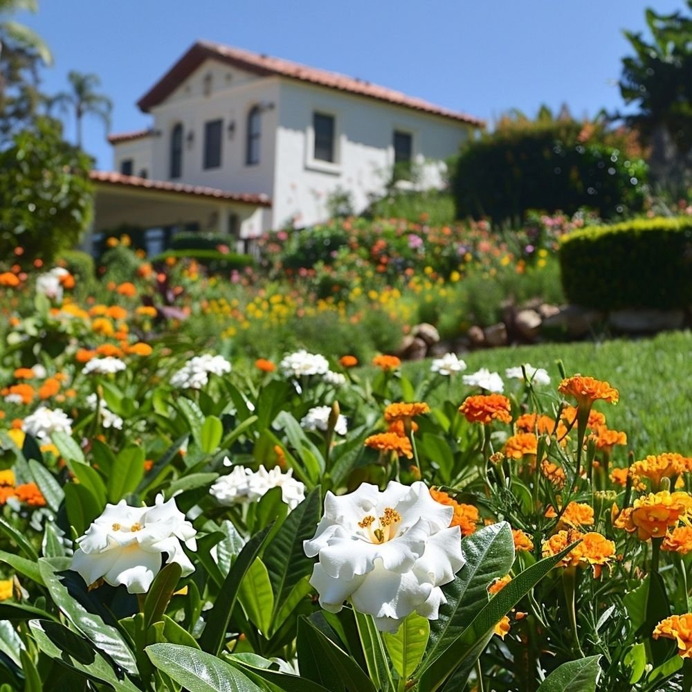 Lavender and gardenia add fragrance. Succulents and agave keep maintenance simple. Bamboo and ornamental grasses create privacy and texture. Bougainvillea and hibiscus give bursts of color.