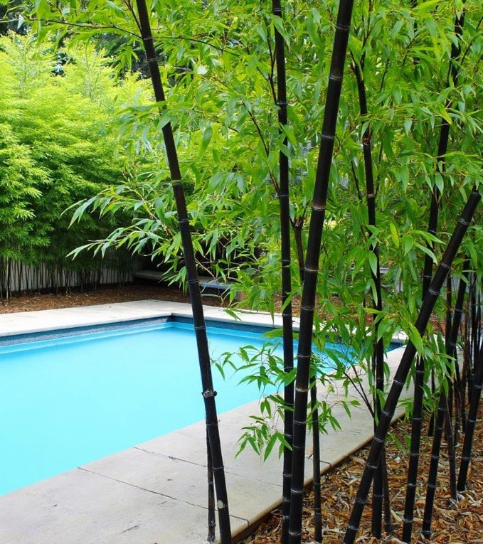 Bamboo thrives in sunny areas with regular watering. Its leaves are narrow and light, so they do not create too much mess in the pool. With bamboo, your pool gains both beauty and a sense of seclusion.