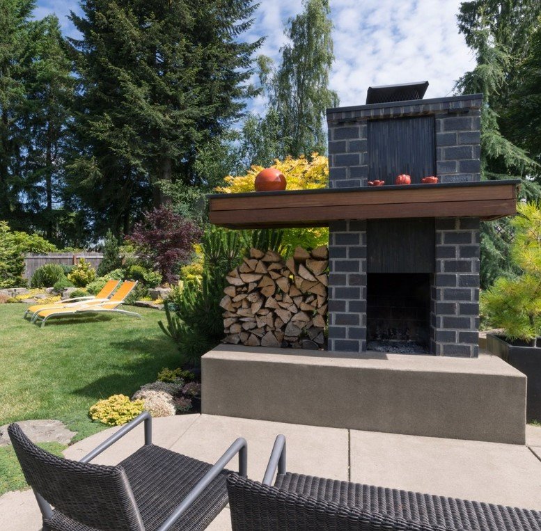 A black brick fireplace isn’t just for indoors. It can also make an outdoor patio or backyard seating area feel cozy and elegant.