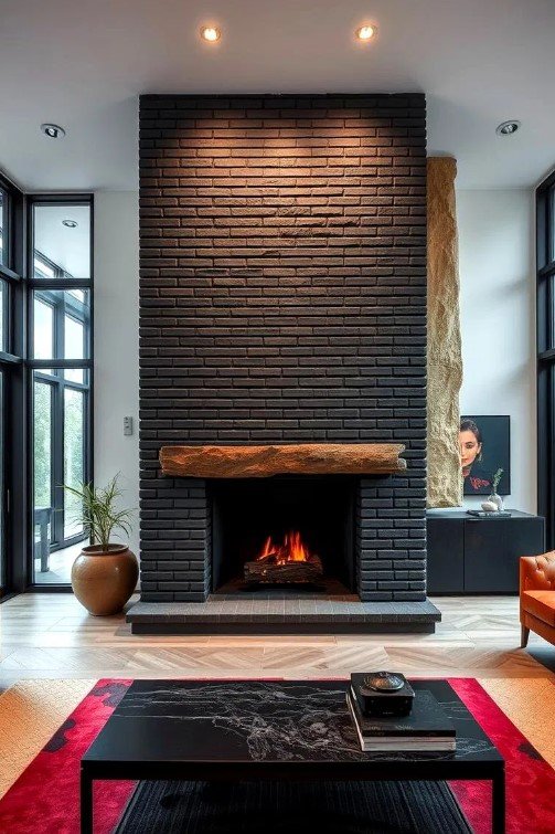 Pairing black brick with natural wood, metal, or light-colored walls creates contrast and balance. Whether you love modern, farmhouse, or industrial designs, there’s a black brick fireplace idea that fits your taste.