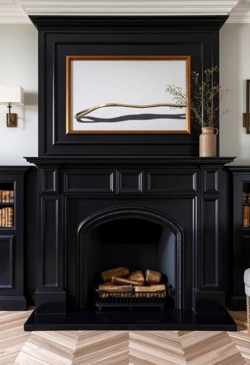 A matte black finish gives a fireplace a clean and sophisticated appearance. The smooth texture of matte paint softens the strong tone of black, making it look refined rather than harsh. This style fits beautifully in modern homes with simple furniture and neutral colors.