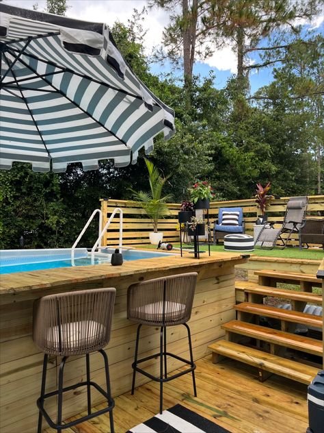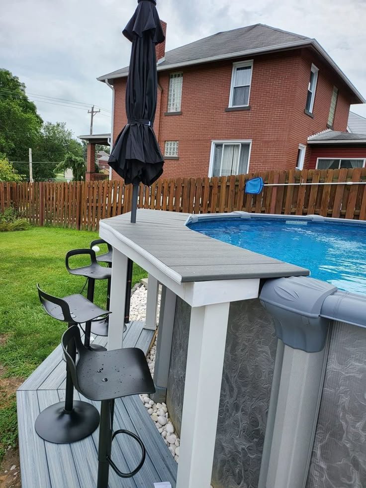 Adding a small bar or snack counter makes your pool area fun and social. Use one side of your deck or patio for this setup.
