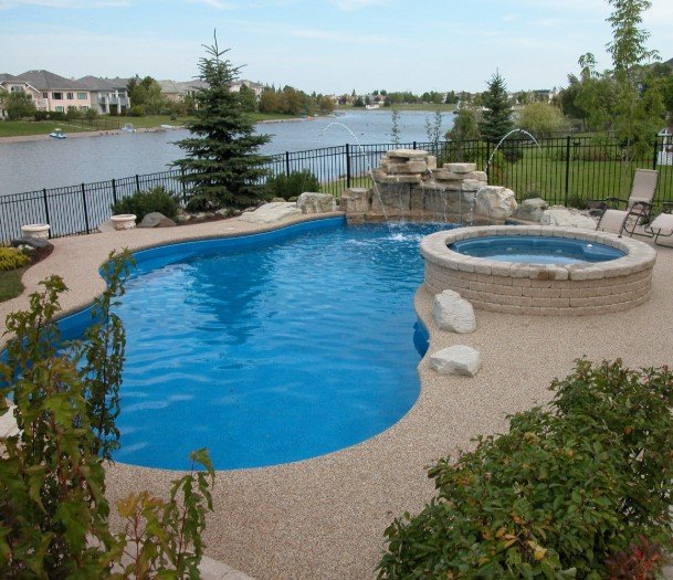 The feature does not have to be large even a small waterfall can make a big impact. It gives the pool area character and helps it stand out.
