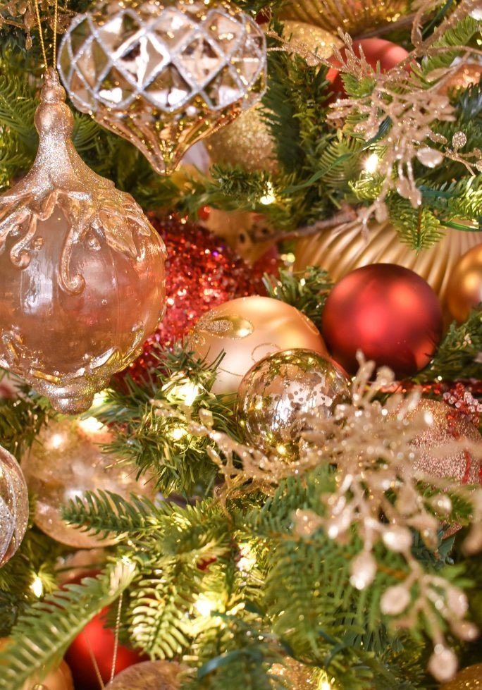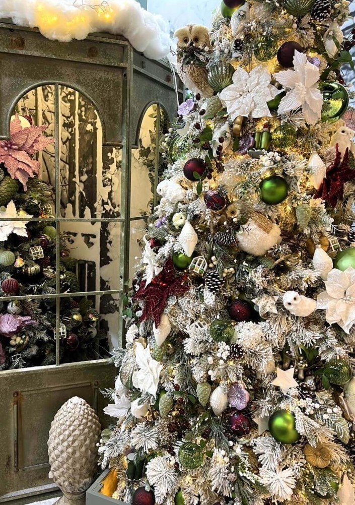 Expect themes that feel theatrical yet cozy, with a nod to folk charm and vintage whimsy. Classic palettes stay strong, but they’re being reimagined through texture and tone—velvet ribbons, frosted ornaments, and glowing metallic finishes.