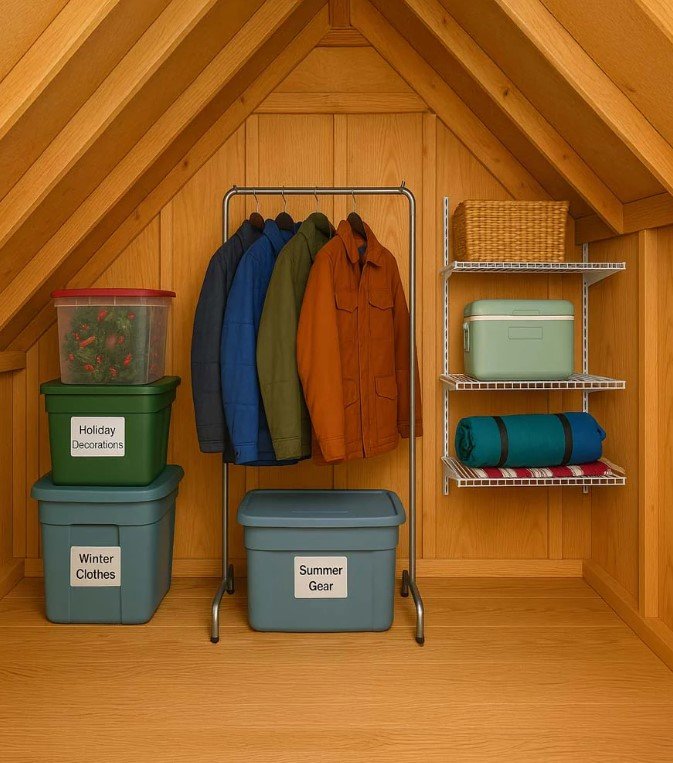 Dividing the attic into zones makes storage easier to manage. For example, one section for holiday decorations, one for clothes, and one for family keepsakes. This zoning system saves time and prevents confusion later.