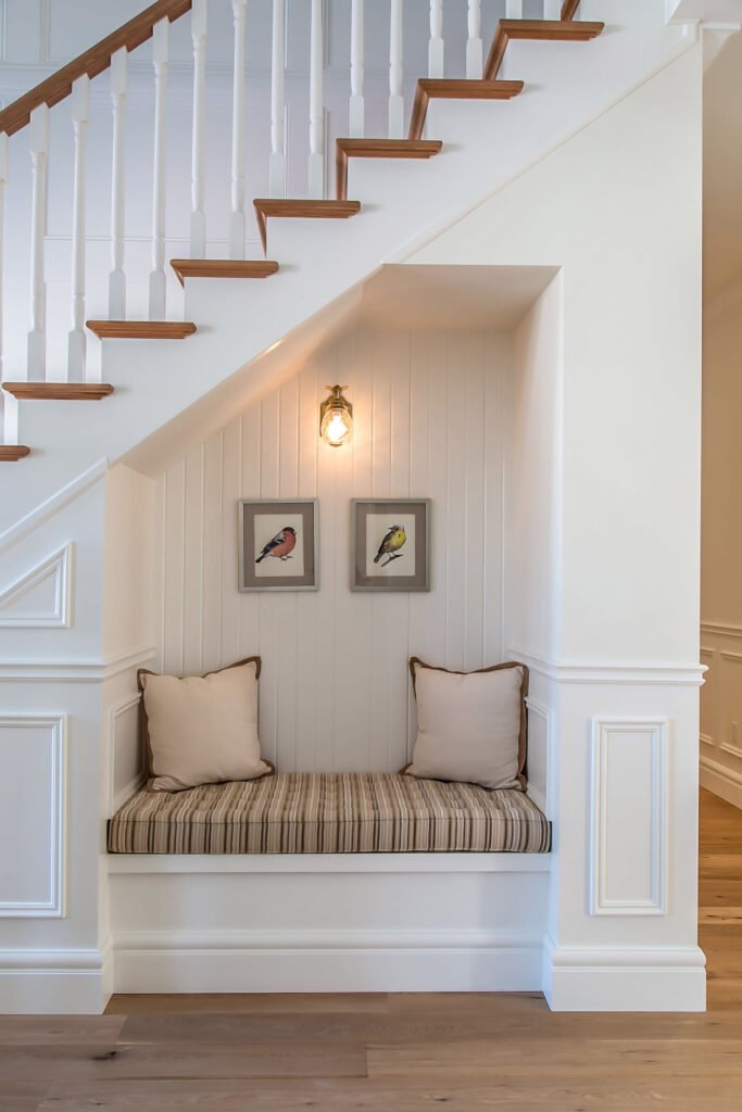 Add soft cushions on top for comfort. It turns the attic into a cozy reading corner while keeping clutter out of sight. Wooden benches are durable and can be painted to match the attic’s style.