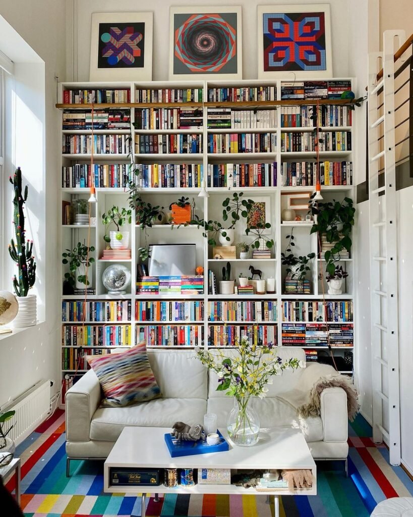 Label boxes or baskets to keep track of items. Seasonal clothes, holiday decor, and old toys fit perfectly here. Built-in shelves also keep the floor open for easy walking or other furniture.
