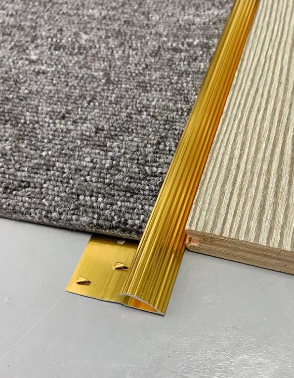 T-Molding works best when two floors have the same height. Its T-shape fits into the gap between floors. The top bar rests on the surface, while the bottom slides into the space below. This strip is common between carpet and hardwood, laminate, or tile.