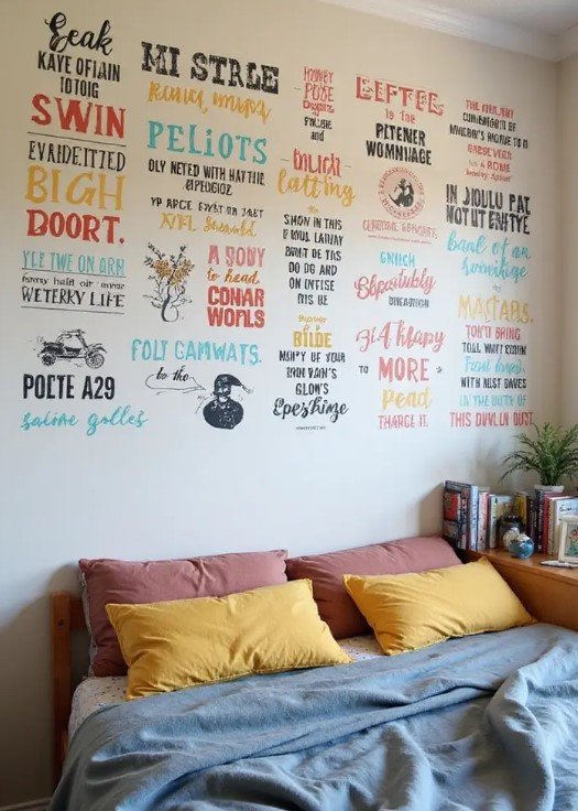 Popular choices include stars, geometric shapes, or leafy designs. You can frame your desk area with decals or scatter them above your bed. Quote decals also work well if you want inspiring words on the wall.