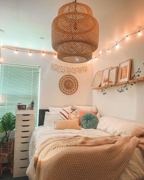 Choose warm white lights for a calm, cozy vibe. Choose multicolor lights if you want energy and fun. Battery-powered ones are good if you don’t have enough outlets. String lights are affordable, easy to install, and instantly transform the space.