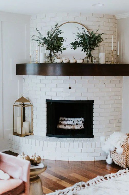 A brick fireplace adds character and a traditional touch. Red or whitewashed bricks create a warm backdrop for any room. Paint the bricks white for a fresh farmhouse look.
