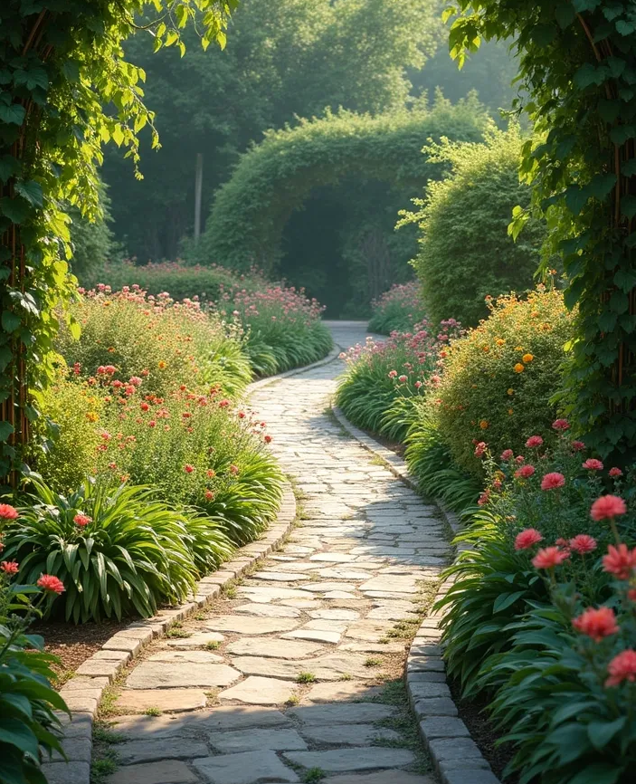 Create a simple DIY garden pathway using stepping stones, gravel, or mulch. A budget-friendly way to add structure and charm to your backyard while guiding guests through your outdoor space.