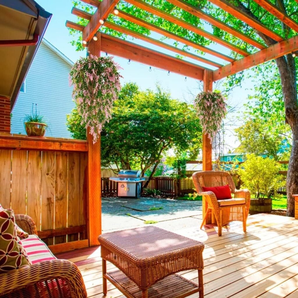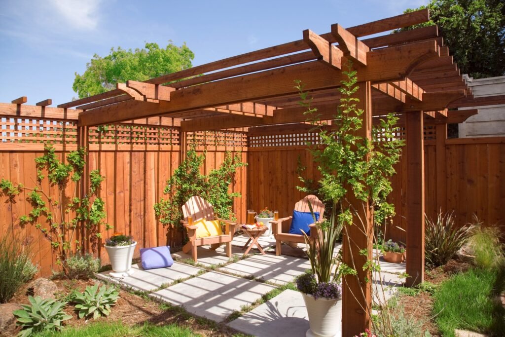 This project creates a shaded area perfect for dining, reading, or unwinding outdoors.