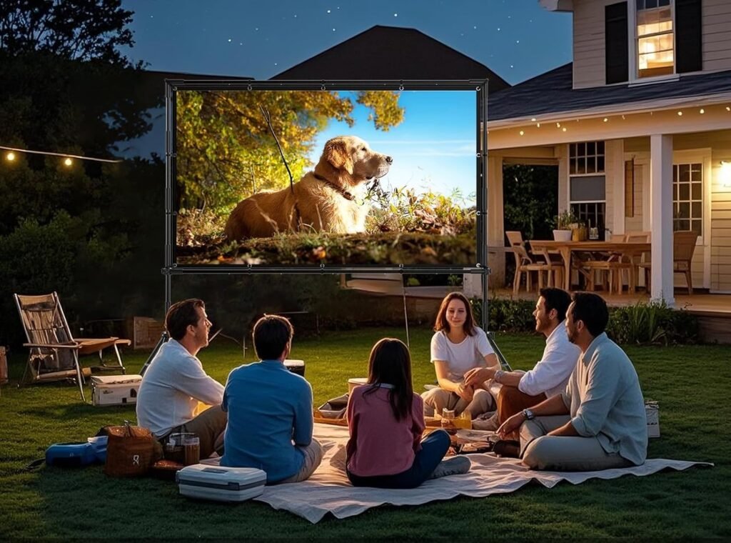 - Arrange cozy seating with blankets, cushions, or chairs in front of the screen.