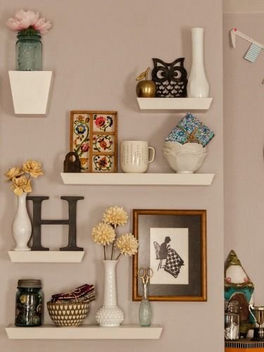 Shelves allow flexibility. Instead of fixing art directly on walls, you display it on floating shelves.