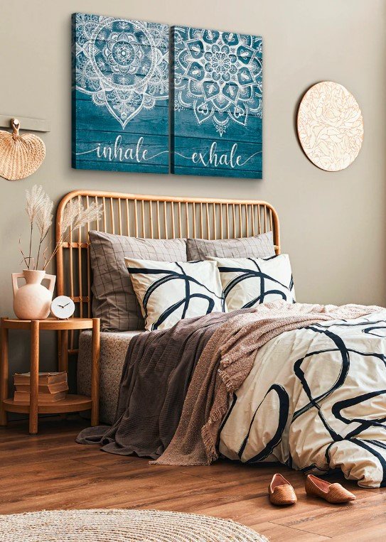 Choose designs that match your bedroom’s energy. Watercolor-style prints in soft tones bring relaxation. Bold geometric patterns give a modern touch. Scenic prints such as sunsets or flowers add romance. For personal flair, you can even turn family photos into canvas prints.