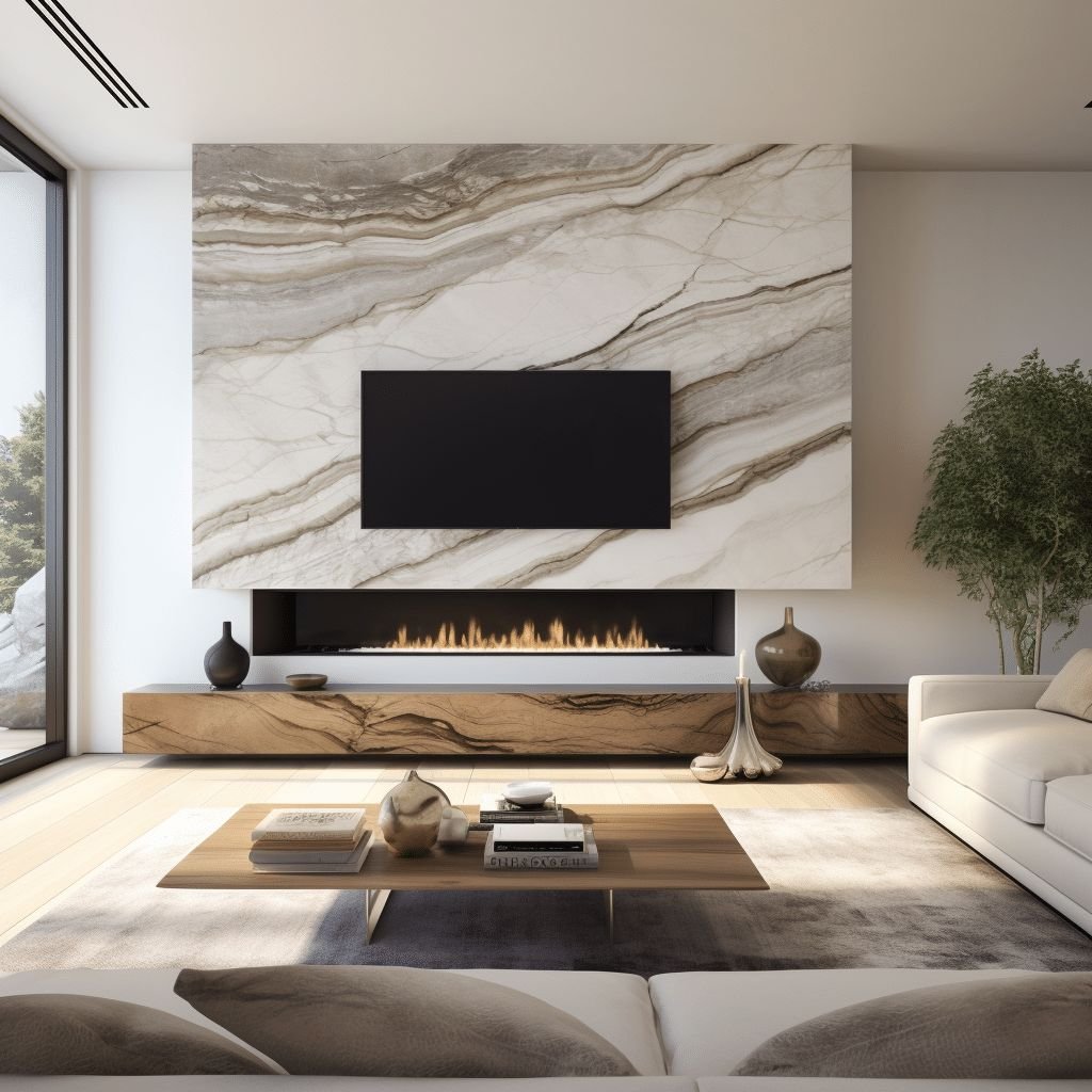 - Repeat finishes like wood or stone across the room for visual consistency.