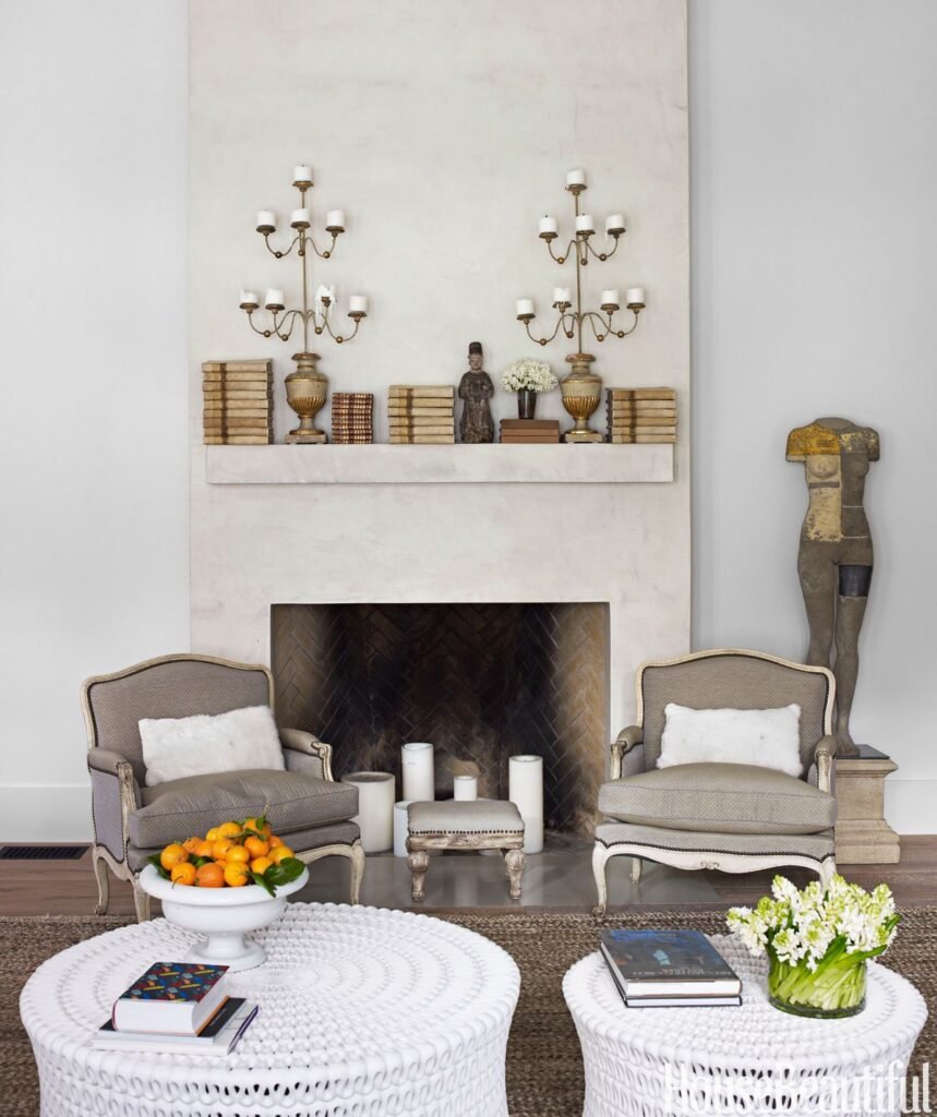 Transform an empty fireplace into a charming display for antiques. Showcase vintage books, candlesticks, or heirloom décor to give your space warmth, history, and style without needing a fire.